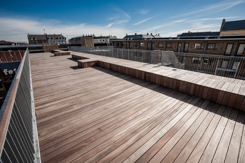 På ejendommen er der flot gårdmiljø samt lækker stor tagterrasse. Ejendommen er elevator betjent og i kælderen er der 20 parkeringspladser.